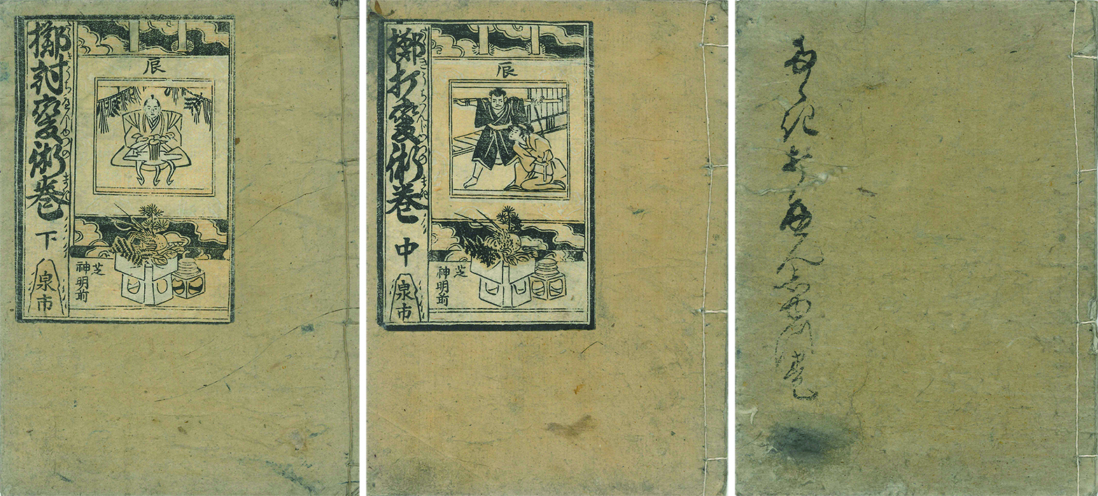 備考中本。元の黄色表紙付、中・下巻に元の絵題簽を残す。柱題「たゝきうち」。本文保存良。