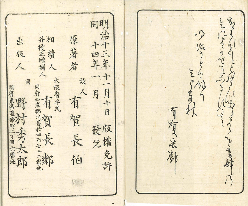 版元(出版社)野村秀太郎版 柳原喜兵衛等発兌