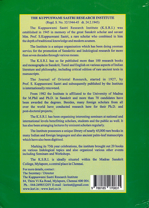 版元(出版社)The Kuppuswami Sastri Research Institute.