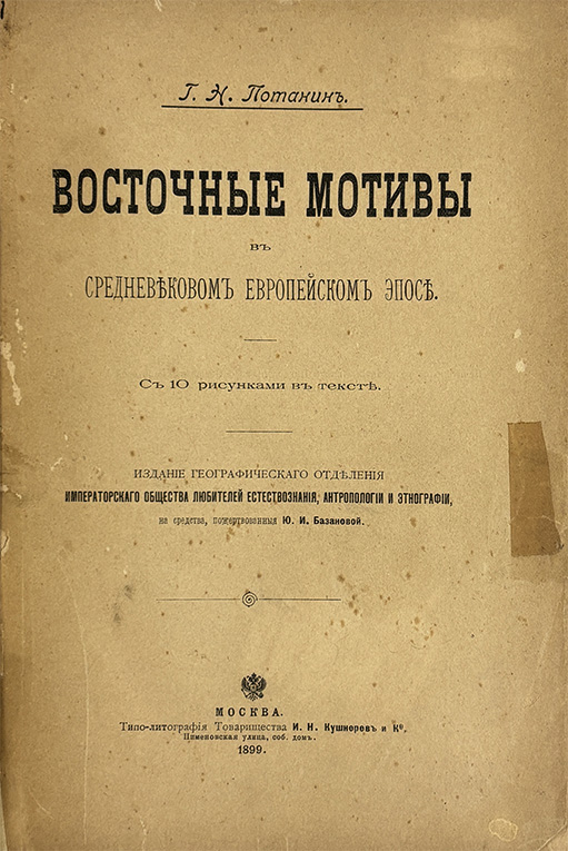 備考ポターニン 中世ヨーロッパ叙事詩における東洋的主題 モスクワ 1899年刊
