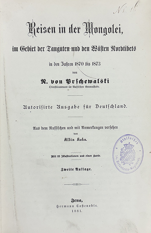 | 書名 | Reisen in der Mongolei, im Gebiet der Tanguten und den Wusten Nordtibets in den Jahren 1870 bis 1873. |