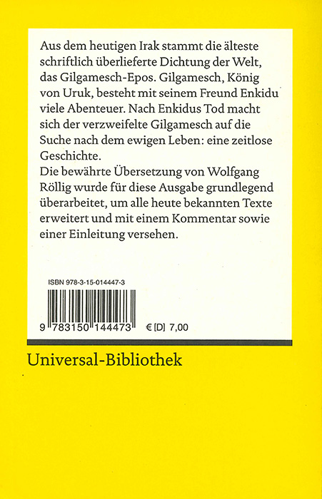 Das Gilgamesch-Epos. Auf Grundlage der Aufrage von Wolfgang Rollig. (Reclam Universal-Bibliothek Nr. 14447)