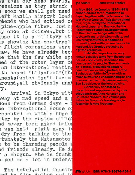| 備考 | 1954年5月、イゼ・グロピウス(1897-1983)は、夫で建築家のヴァルター・グロピウスとともに3ヶ月間の日本旅行に出発した。 国際文化会館の主催、ロックフェラー財団の支援によって実現したこの綿密に計画された訪日ツアーは、二人を日本の建築家、職人、芸術家、ジャーナリスト、大学教員など多彩な人々との活発な交流へと導いた。 夫の講演活動を支え、その原稿作成を担う一方で、イゼ・グロピウスは記録者としての才能を発揮する。 戦後期における彼女の唯一のまとまった文章として知られる詳細な旅行記の中で、彼女は日本という国とその人々を、生き生きとした筆致で描き出している。 復興をめぐる講演や議論、夜のレセプション、東京で開催されたバウハウス展といった出来事から、日本女性の役割、禅仏教、さらには日本の食文化に至るまで、ユーモアと深い理解をもって鋭く綴られている点が印象的である。 本書は、編集者による綿密な注釈に加え、Anne Hultzschおよび野澤俊太郎による寄稿を収録し、イゼ・グロピウスの旅行記をファクシミリ形式で初めて公開する。 建築史のみならず、戦後日本の文化的風景を新たな視点から照らし出す、貴重かつ魅力的な一冊である。 |