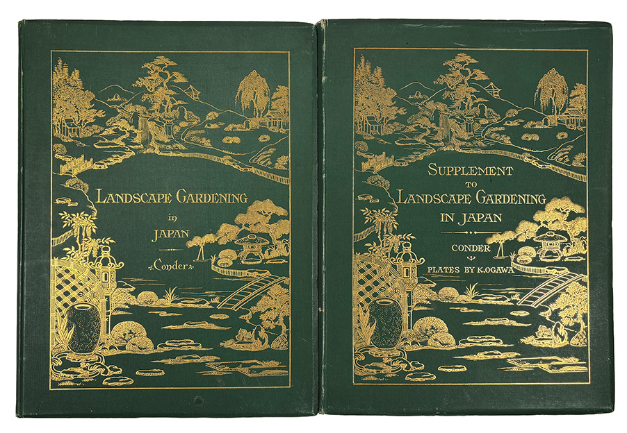 & Supplement to Landscape Gardening in Japan. Folio. xi, 161pp. 13 tinted-lithographs & 24 black & white plates. 55 text-illus. With Supplement to Landscape Gardening in Japan. Collotypes by K. Ogawa. 40 collotype plates. Original pictorial cloth, slightly stained on edges. Ex-library copy, stamp on several pages, endpapers, edges. Together 2 vols.    Y25110281