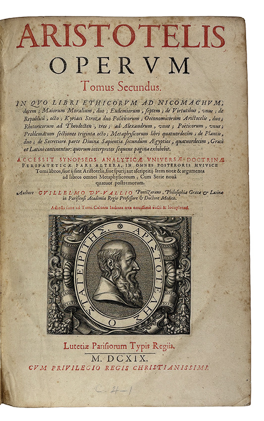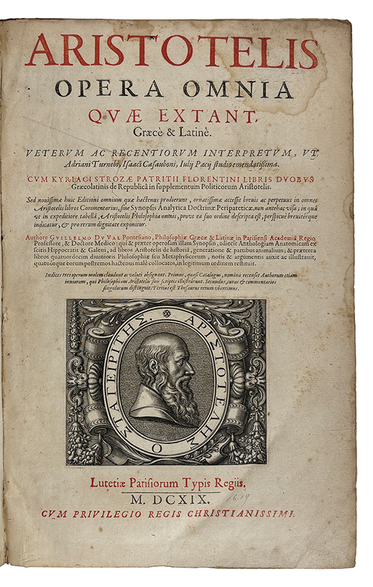 | 備考 | アリストテレス全集 希・羅語対訳 ギレルモ・デュヴァル監修 1619年 パリ刊 古革装・直し有 全2冊 |