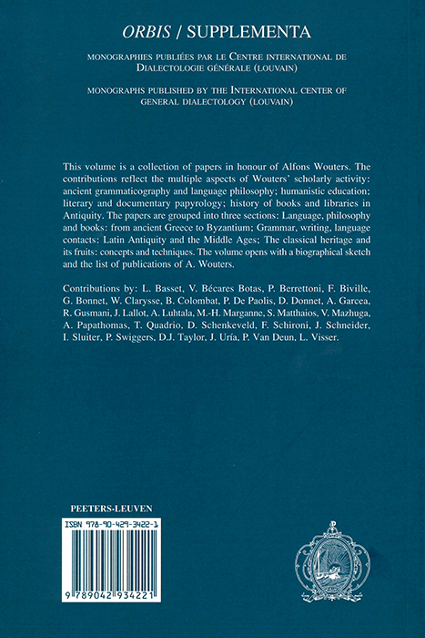 Language, Grammar, and Erudition: From Antiquity to Modern Times. A collection of papers in honour of Alfons Wouters. (Orbis, Supplementa, Tome 44)