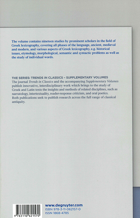 Studies in Greek Lexicography. (Trend in Classics- Supplementary Volumes, Vol. 72)