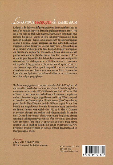 | 書名 | Les Papyrus Magiques du Ramesseum. Recherches sur une bibliotheque privee de la fin du Moyen Empire. (Bibliotheque d’Etude, 172) |