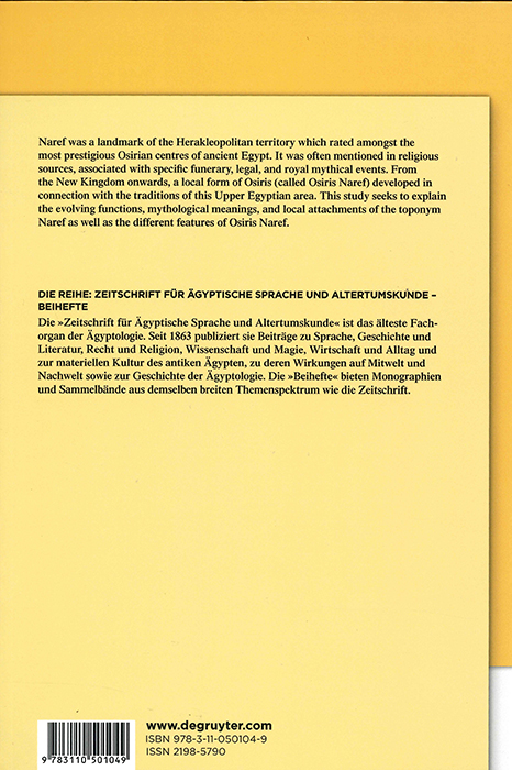 Naref and Osiris Naref. A Study in Herakleopolitan Religious Traditions. (Zeitschrift fur Agyptische Sprache und Altertumskunde, Beihefte, Band 3)