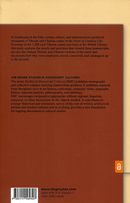 | 書名 | Producing Buddhist Sutras in Ninth-Century Tibet. The Sutra of Limitless Life and its Dunhuang Copies Kept at the British Library. (Studies in Manuscript Cultures, Vol. 43) |